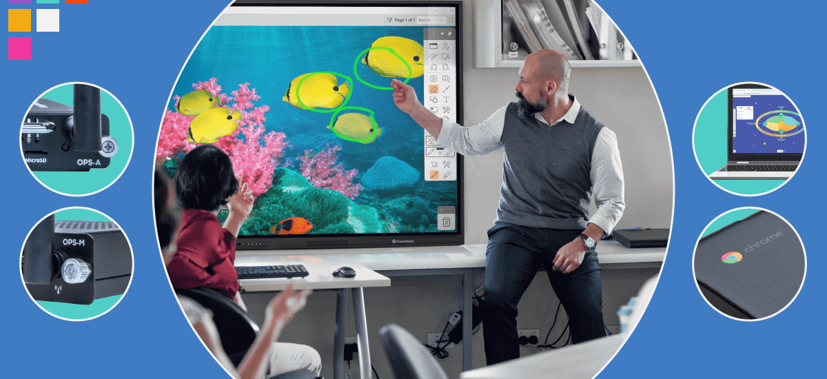 Com um painel flexível, as equipas de TI podem escolher o dispositivo informático que melhor se integra no ecossistema da escola, como o Promethean OPS-M ou o OPS-A com certificação Google EDLA, garantindo compatibilidade com a infraestrutura atual e a possibilidade de evolução no futuro. Esta abordagem dá total liberdade para atualizar ou trocar o sistema operativo sempre que necessário, sem depender de um único ambiente. Além disso, cada utilizador pode operar o painel com facilidade, ligando-o diretamente ao seu próprio computador portátil ou desktop.