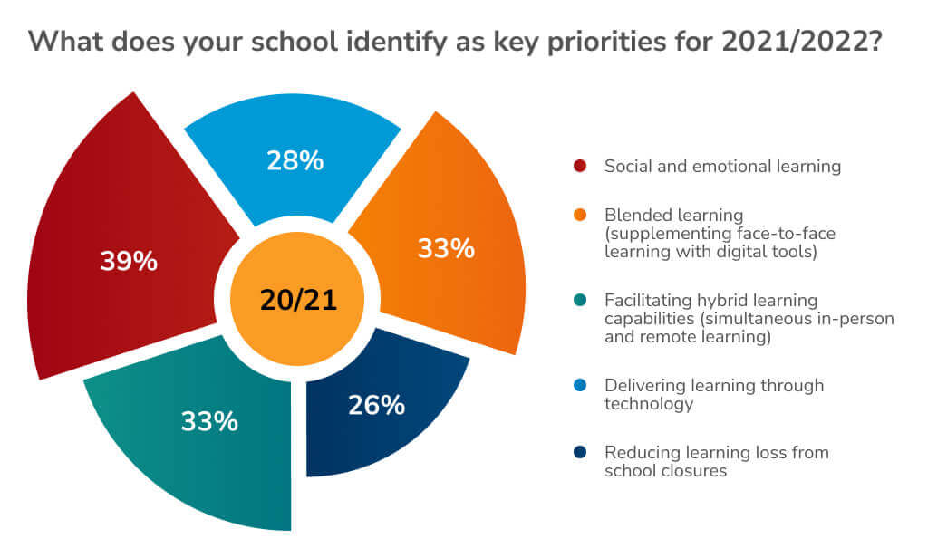 Or is it even more important than that? Student wellbeing has deepened from nurturing well-rounded young people prepared to thrive as adults, to fostering personal relationships and tailoring lessons to individuals. As staff remain committed to helping students recover from another year of disruption, it’s more than raising their results and attainment. In fact, they come second this year — the 2021/22 US State of Technology in Education Report reveals social and emotional learning is the top strategic priority, according to 39% of educators.