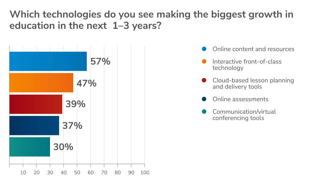 Supplementing teacher-led lessons with versatile and dynamic activities caters to differentiated learning styles and engaging mixed-ability students. Additionally, with effective support and training, tech-enabled objectives can help reduce the staff burden — one of the greatest issues facing the future of education — as 83% believe edtech helps them do their job better. As well as tools to improve their own productivity, the blended approach enables them to pivot between techniques that align with evolving staff and student needs.